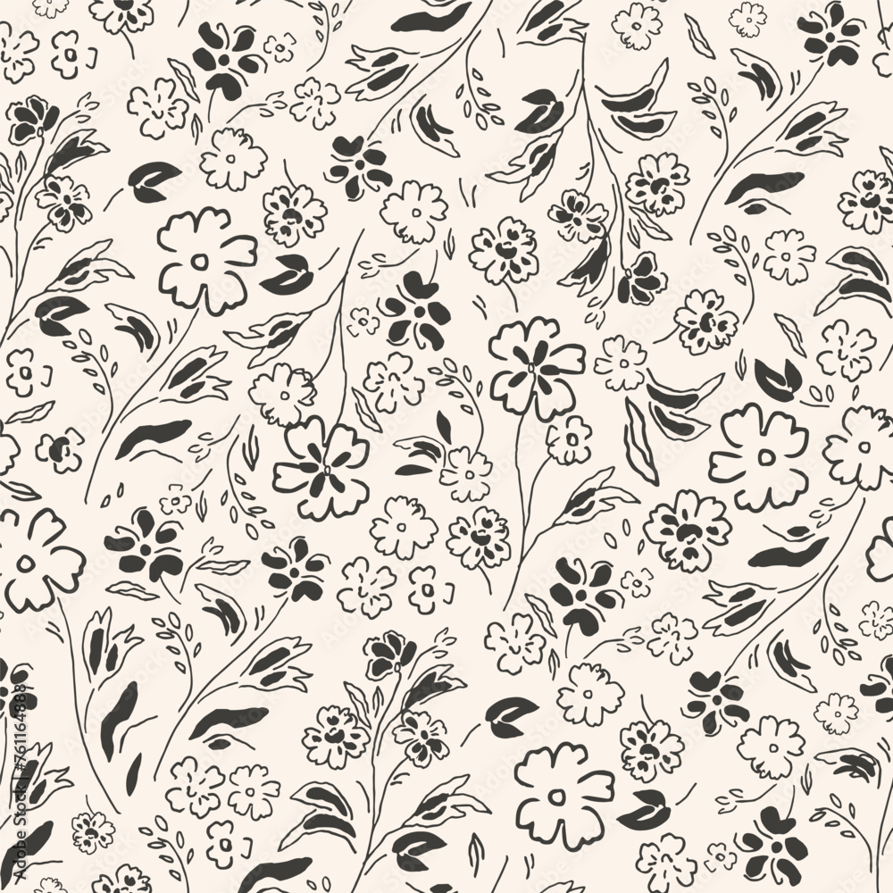 Elegant floral pattern featuring flowers and leaves in a seamless illustration