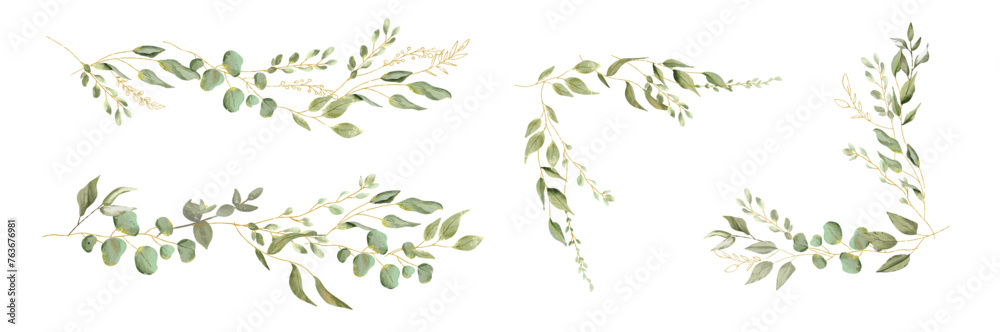 Watercolor Leaves Illustration Set Suitable Use For Wedding Wallpaper Mural - Decorly Solutions | Decorly Solutions
