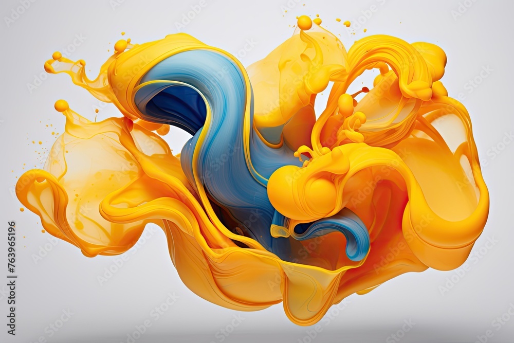 Yellow and blue ink splash on a white background the movemen Wallpaper
