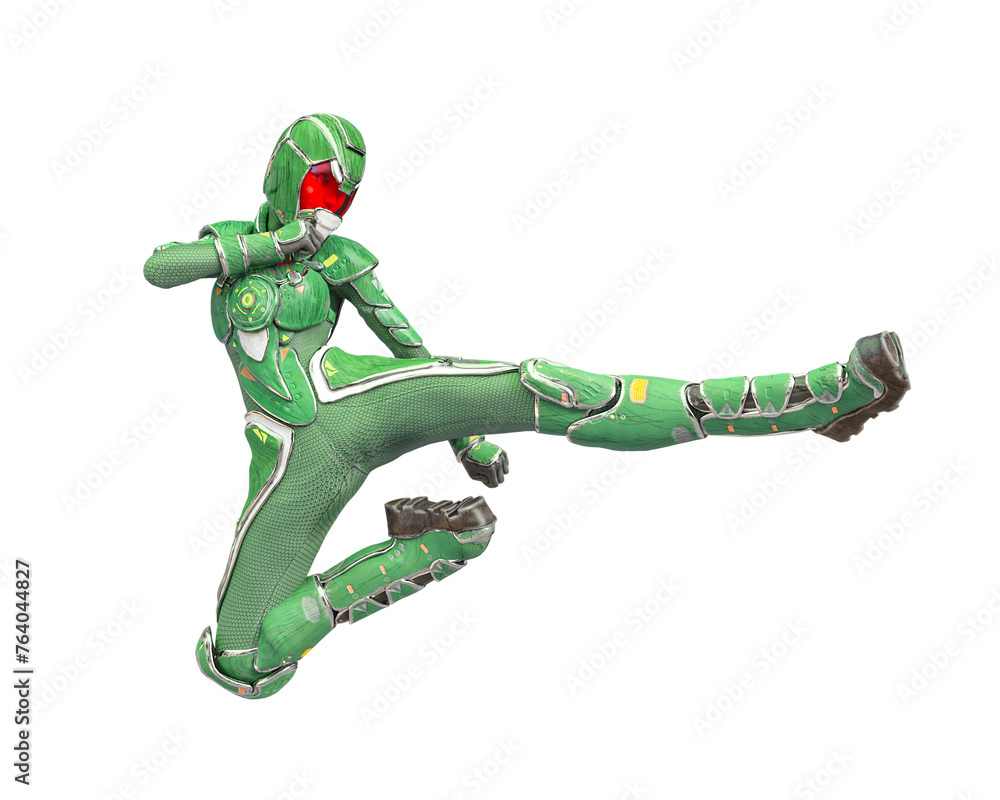 Futuristic Astronaut Girl In A Action Jump Kick Wallpaper Mural - Decorly Solutions | Decorly Solutions
