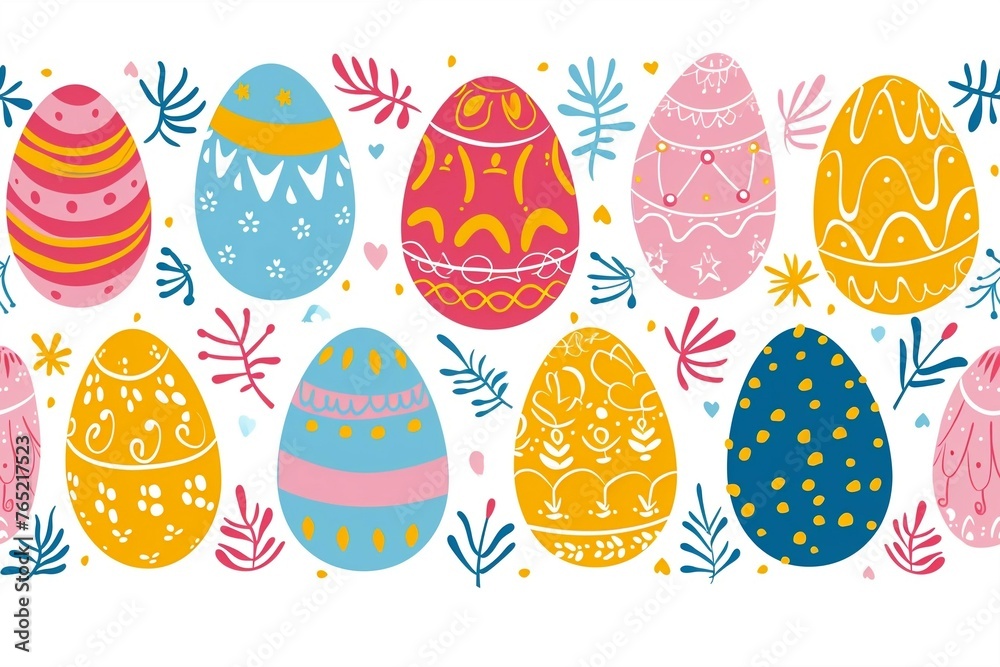 Happy Easter Watercolor Seamless Pattern Multi-colored Easter Eggs Wallpaper Mural - Decorly Solutions | Decorly Solutions
