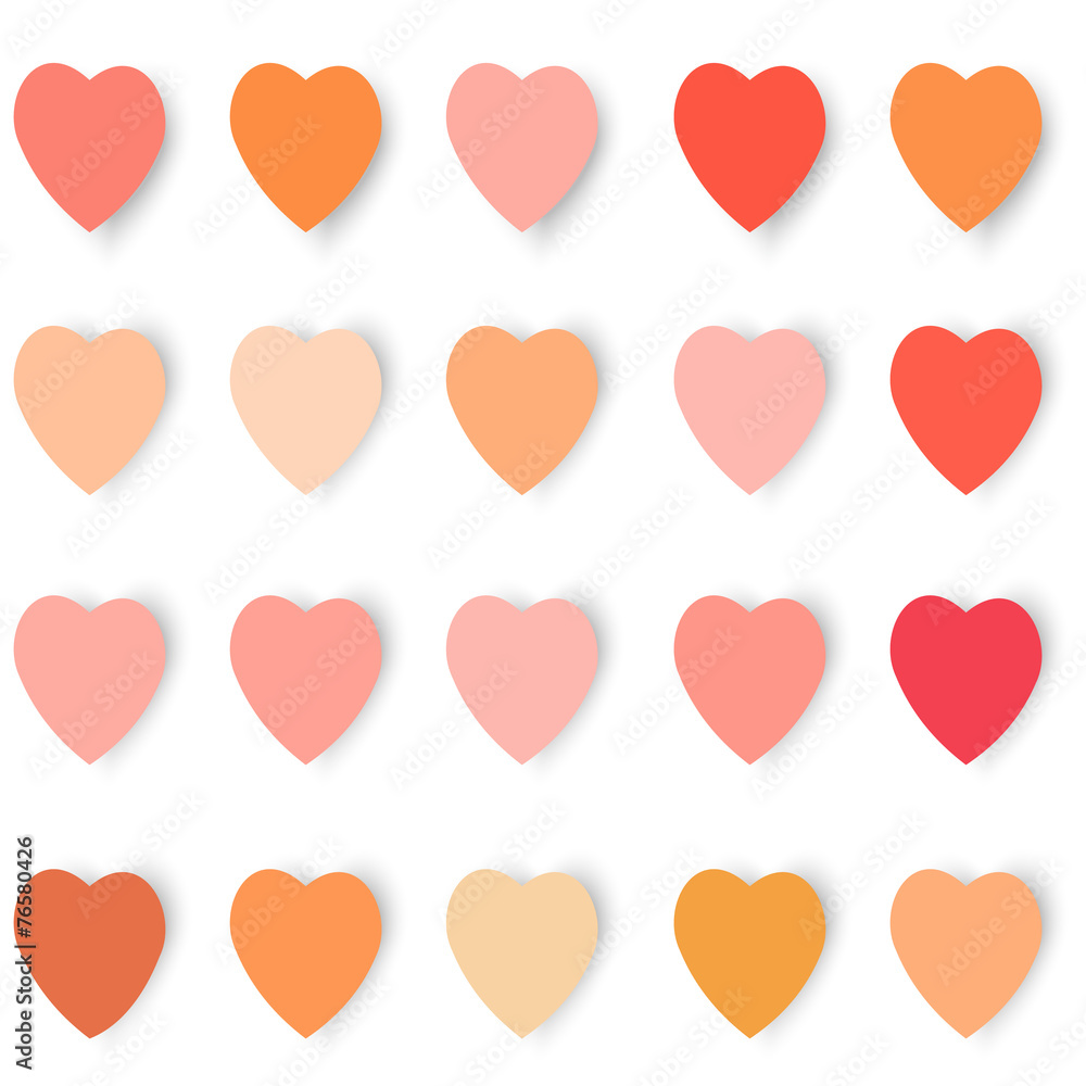 Hearts With Shadows In Different Colors Vector Background Wallpaper Mural - Decorly Solutions | Decorly Solutions