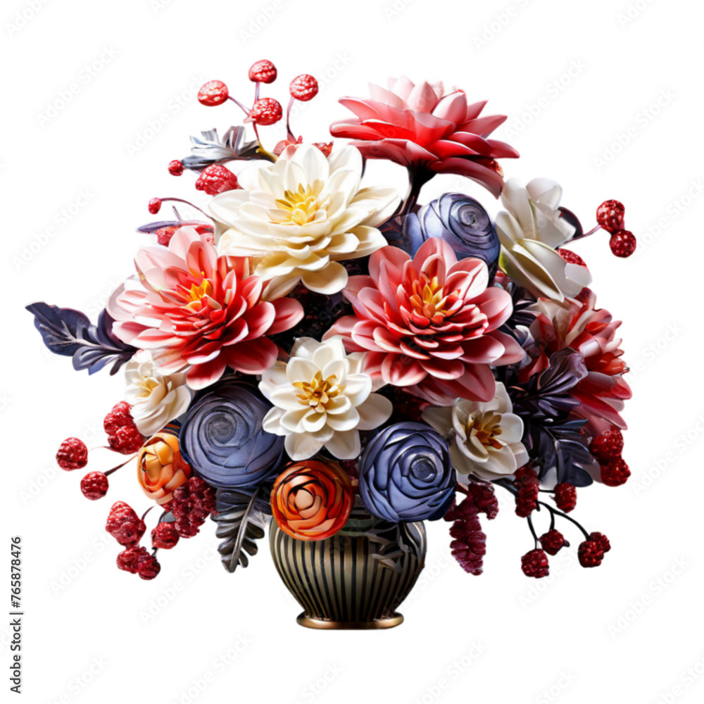vase decoration bouquet flowers planted in a pot on a white png background