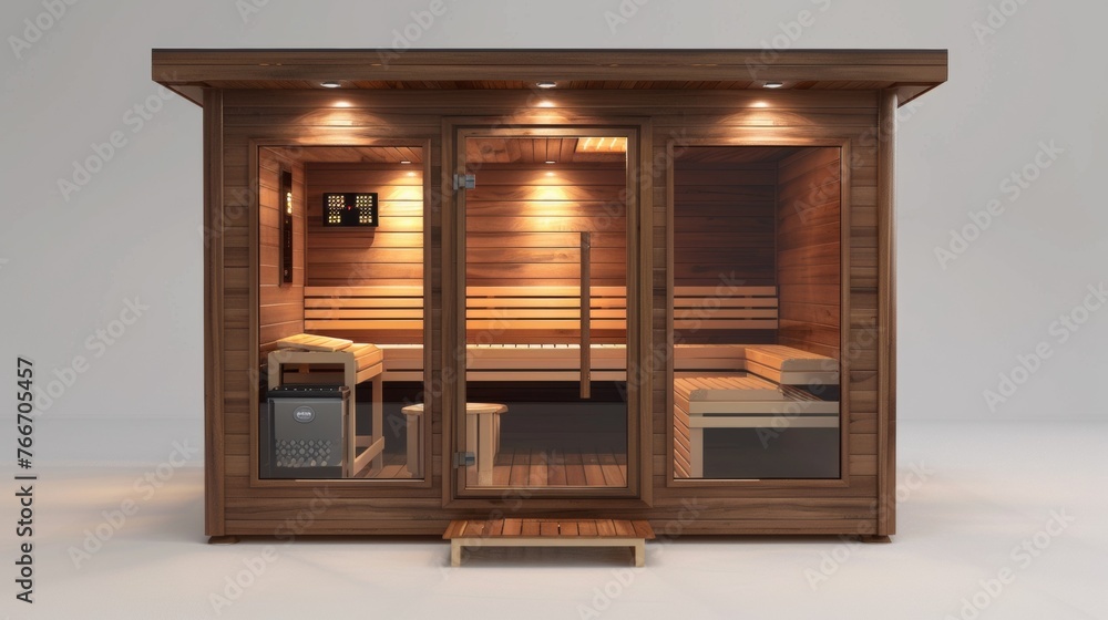 A Wooden Sauna With A Glass Door And Wallpaper Mural - Decorly Solutions | Decorly Solutions