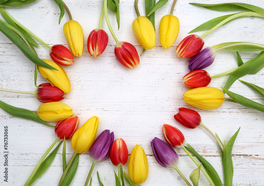 Рамка из тюльпанов на белом фоне
