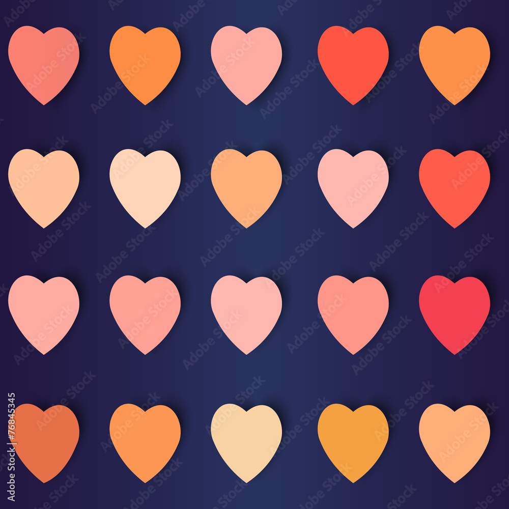 Hearts With Shadows In Different Colors Vector Background Wallpaper Mural - Decorly Solutions | Decorly Solutions
