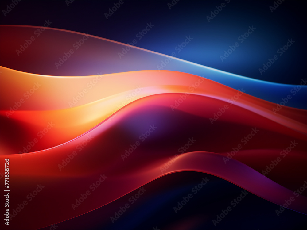 Abstract blue, orange, and red wave background.