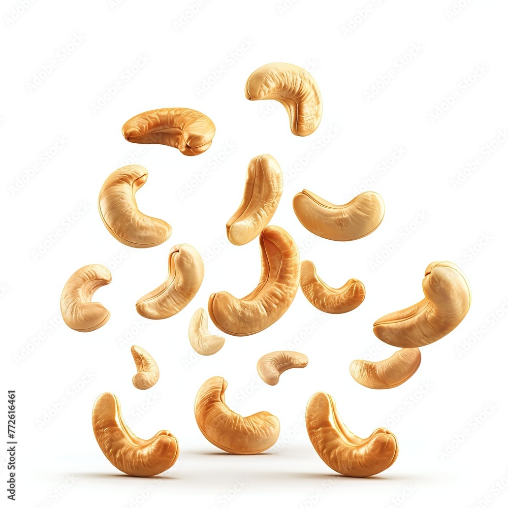 Falling cashew nuts isolated on white background