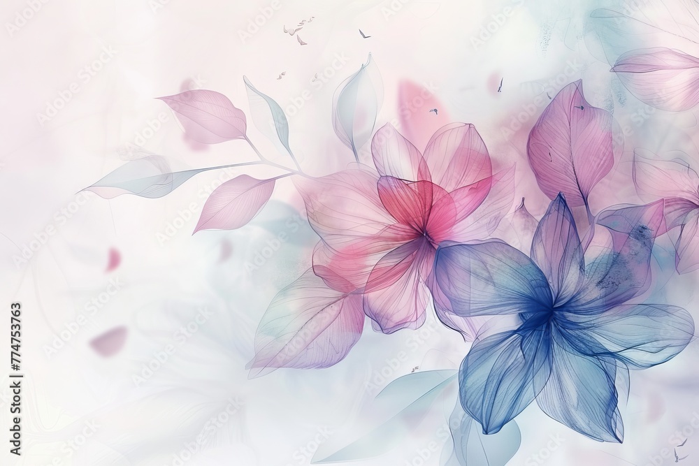 Pink And Blue Flowers Painting On White Background Wallpaper Mural - Decorly Solutions | Decorly Solutions