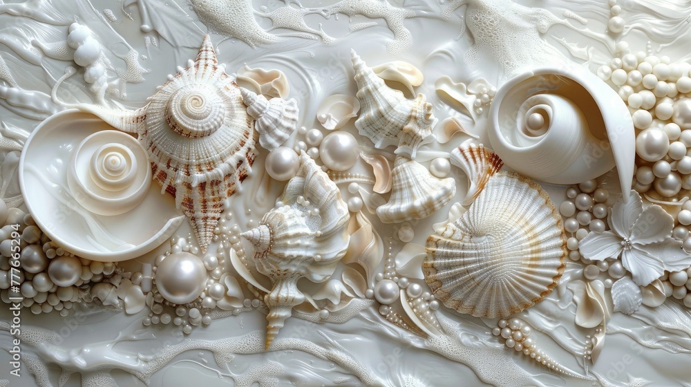 Seashells Pearls And Beads Meticulously Arranged To Form Wallpaper Mural - Decorly Solutions | Decorly Solutions