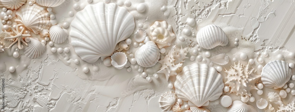 Seashells Pearls And Beads Meticulously Arranged To Form Wallpaper Mural - Decorly Solutions | Decorly Solutions