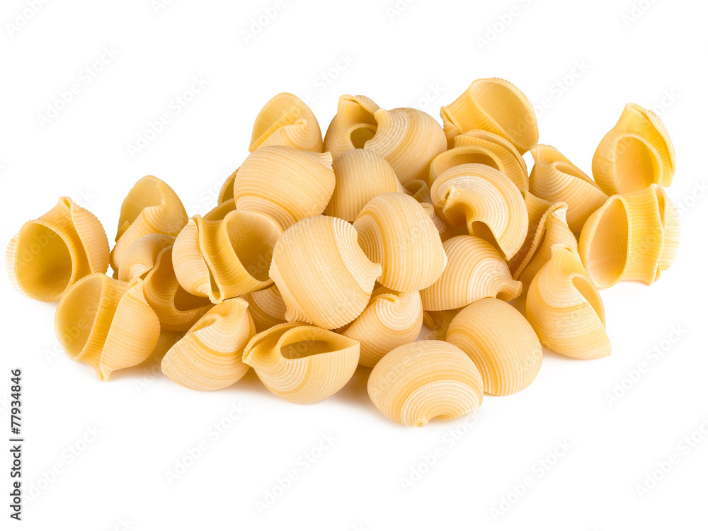 Lumaconi rigati, un tipo di pasta italiana, isolata su fondo bianco