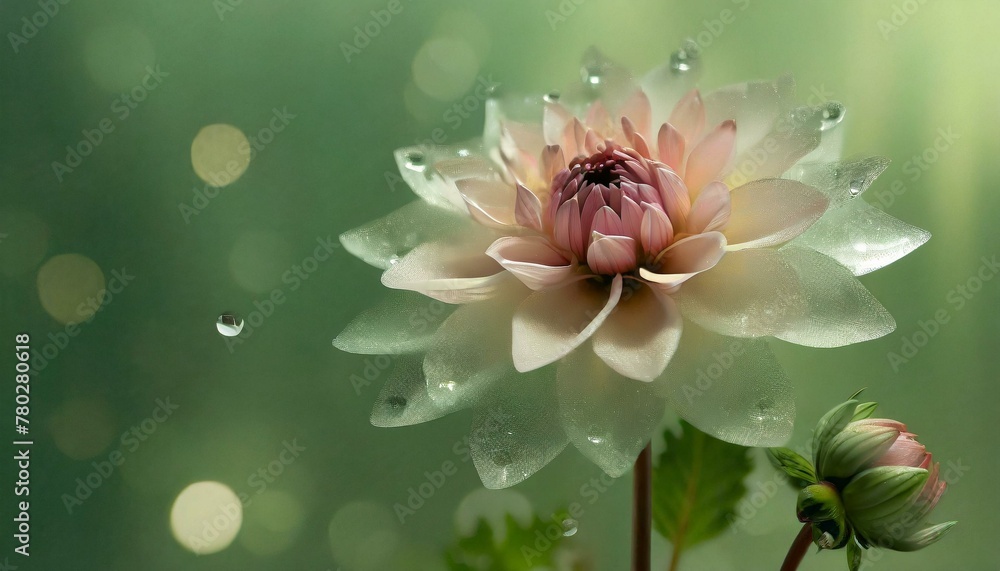 Glass Dahlia Stainless Steel Background Soft Green Background Wallpaper Mural - Decorly Solutions | Decorly Solutions