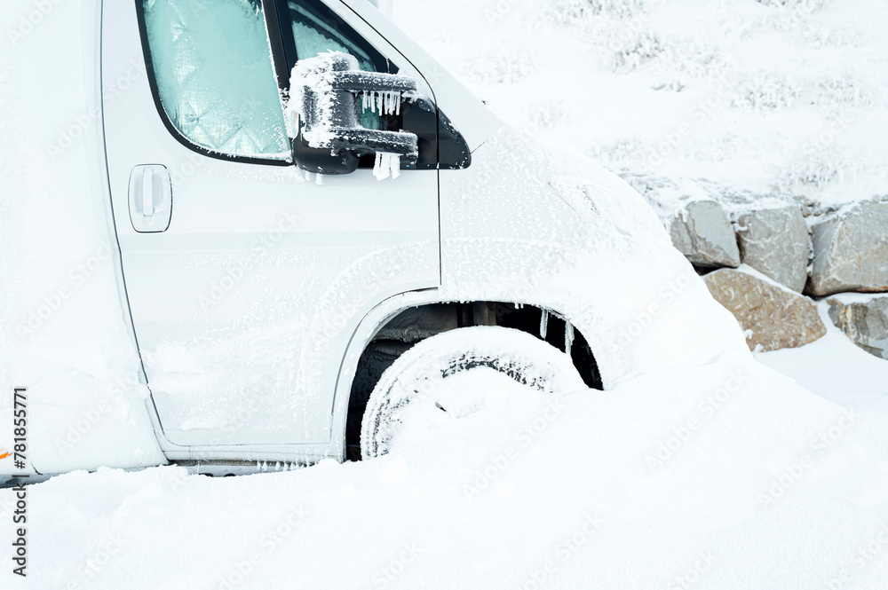 Motorhome in a snowstorm.Sierra nevada.Spain