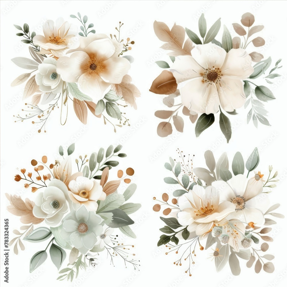 Set Of Watercolor Flowers Wallpaper Mural - Decorly Solutions | Decorly Solutions