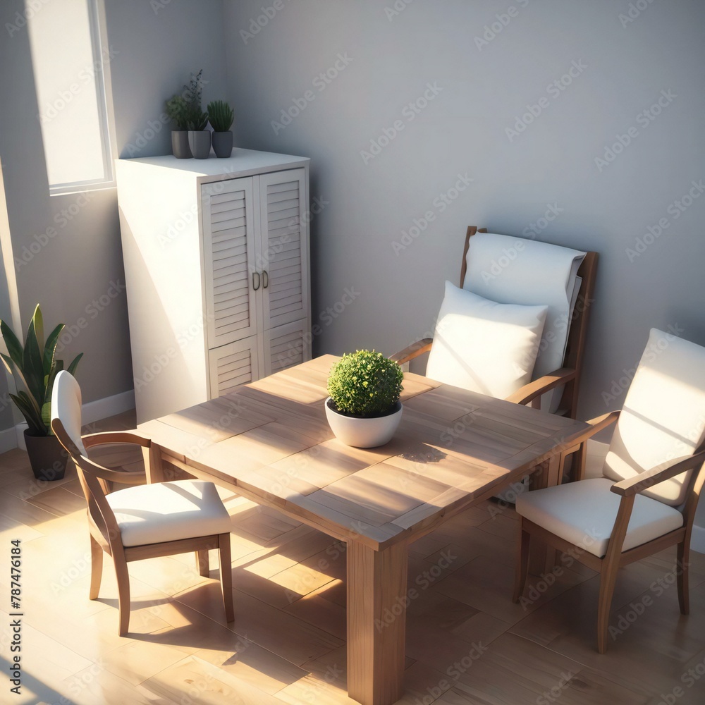 A Minimalist Dining Area With A Wooden Table Wallpaper Mural - Decorly Solutions | Decorly Solutions