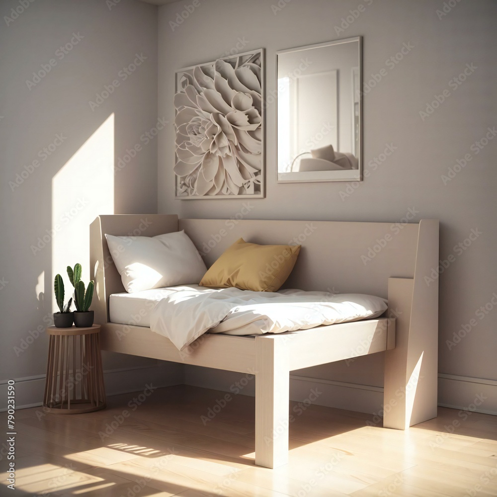 Modern Minimalist Bedroom With A Single Bed Decorative Wallpaper Mural - Decorly Solutions | Decorly Solutions