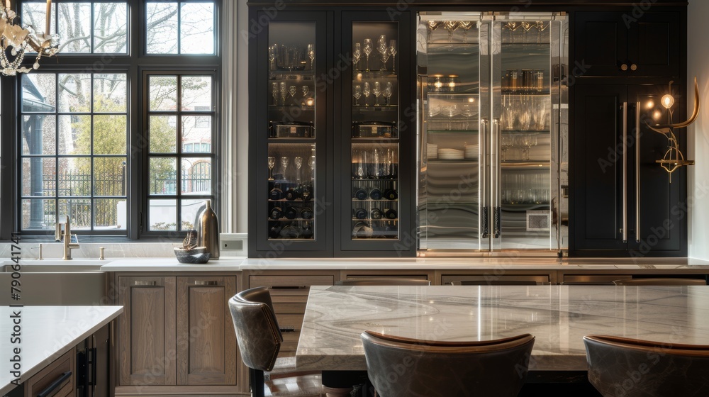 High-end Cabinetry Design Featuring Innovative Storage Solutions And Wallpaper Mural - Decorly Solutions | Decorly Solutions
