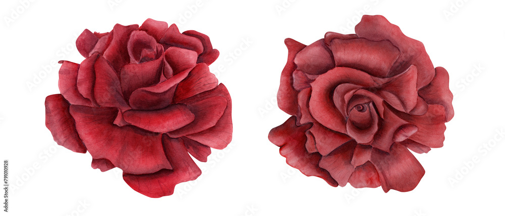 Crimson Rose Watercolor Collection: Delicate Blooms in Rich Hues AI Generated