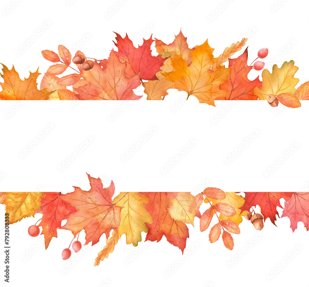 Fall Frame With Autumn Maple Leaves Orange Color Wallpaper Mural - Decorly Solutions | Decorly Solutions