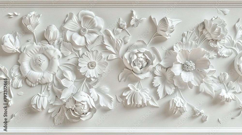 Dimensional Flowers On Decorative Plaster Wallpaper Mural - Decorly Solutions | Decorly Solutions