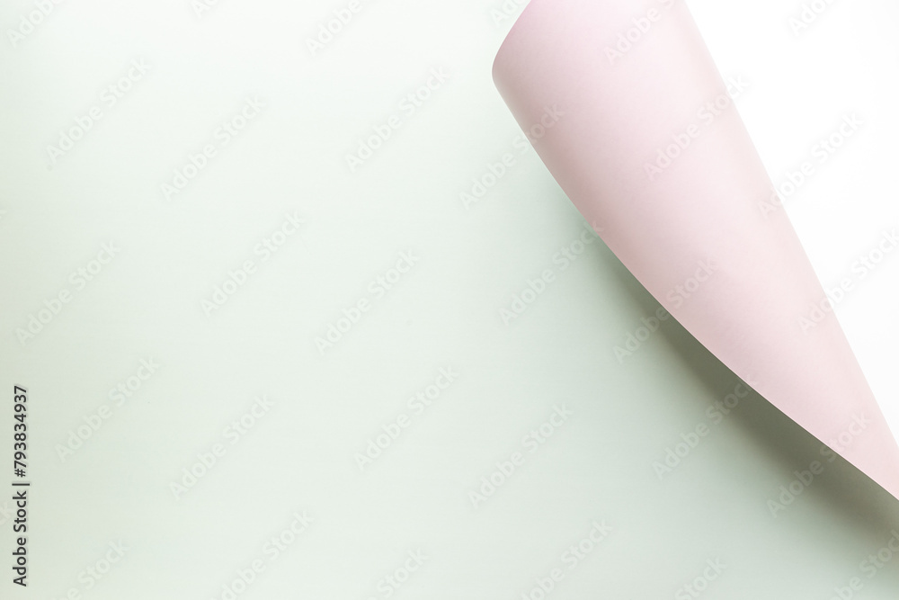 Sheet of paper with curled corners. Space for text,top view. Mock up