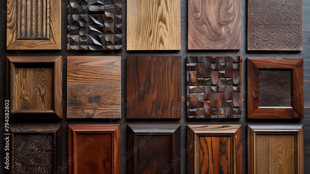 A variety of wood cabinet doors, capturing the essence of both modern luxury and vintage charm