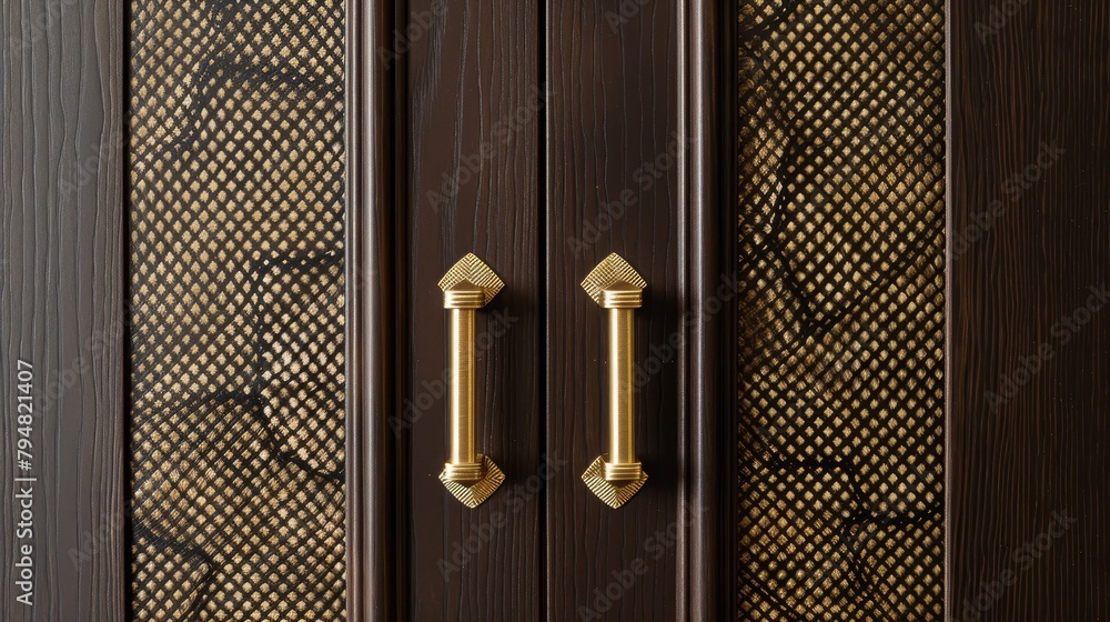 Golden Handles On Brown Cabinet Doors A Perfect Wallpaper Mural - Decorly Solutions | Decorly Solutions