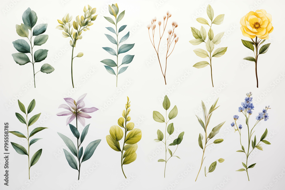 Various Collection Drawings On White Background Wallpaper Mural - Decorly Solutions | Decorly Solutions