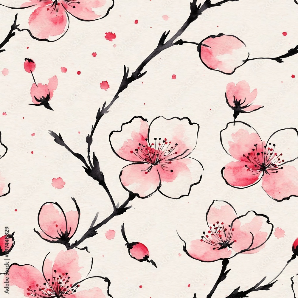 Cherry Blossom Seamless Pattern Wallpaper Mural - Decorly Solutions | Decorly Solutions