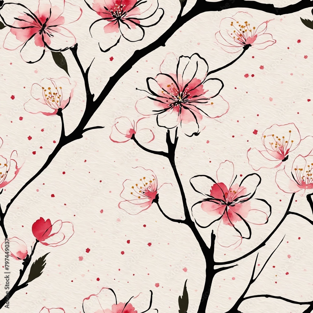 Cherry Blossom Seamless Pattern Wallpaper Mural - Decorly Solutions | Decorly Solutions