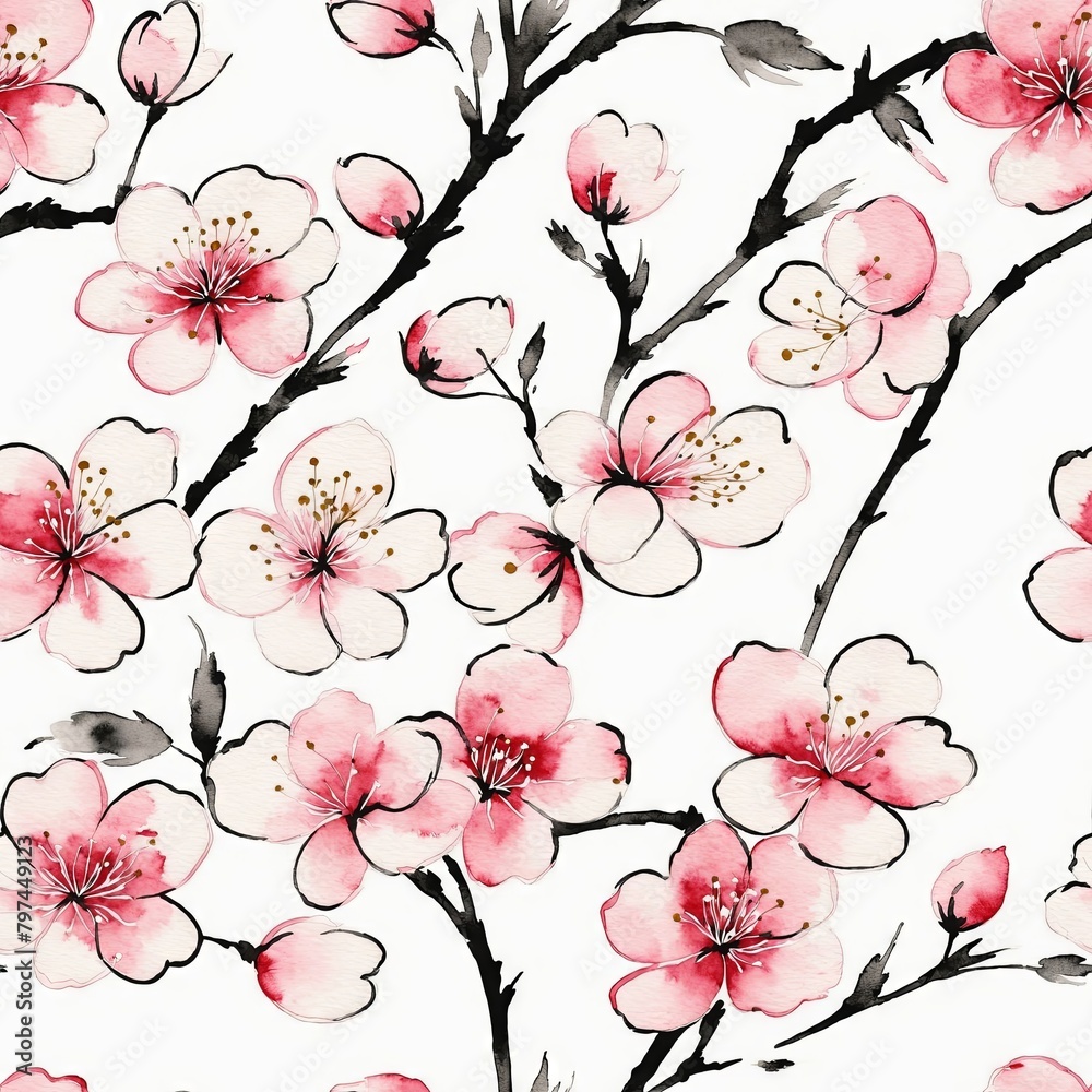 Cherry Blossom Seamless Pattern Wallpaper Mural - Decorly Solutions | Decorly Solutions