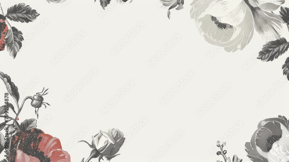 Frame of flowers drawn with ink and pen, vector plant illustration.