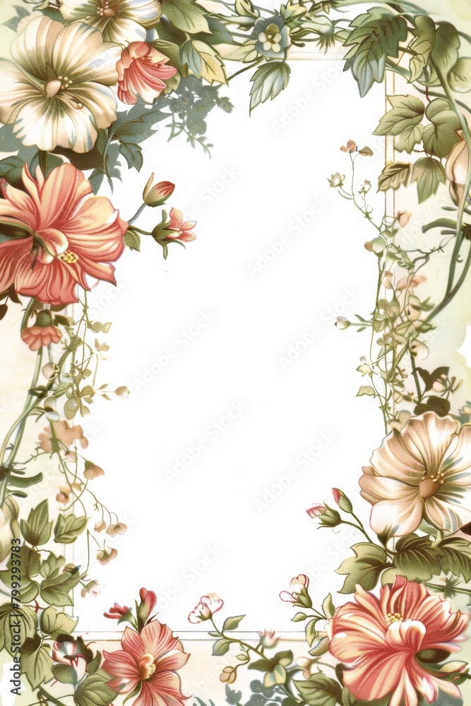 A frame of spring flower with copy space for text, featuring floral design elements like flowers, leaves, and a vintage texture, perfect for a spring, valentine greeting card