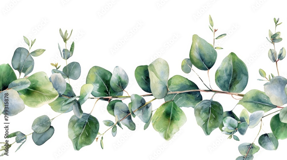 Eucalyptus Watercolor Illustration. Eucalyptus Greenery Hand Painted isolated on white background.  Perfect for wedding invitations, floral labels, bridal shower and  floral greeting cards