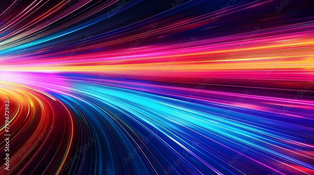 Colorful Speed, Night Road, Motion Blur, Tunnel, Abstract Background, Fast Travel, Technology Concept