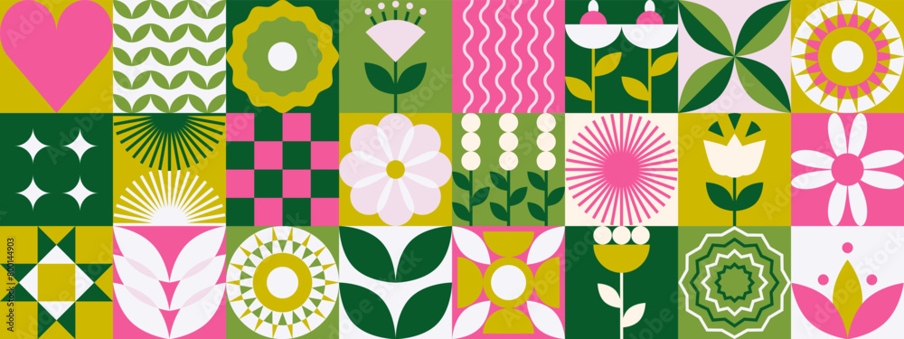Geometric Mosaic Floral Pattern Abstract Minimal Nature Background Wallpaper Mural - Decorly Solutions | Decorly Solutions