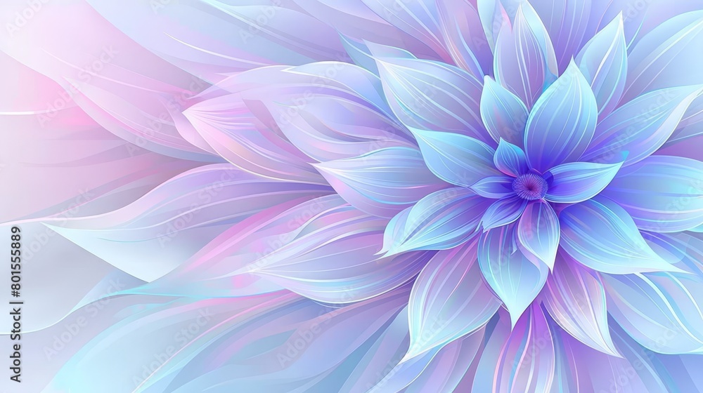 A vibrant, abstract floral design featuring layered petals in soft gradients of pink, purple, and blue, Ideal for backgrounds, wellness themes, or creative projects needing a calming aesthetic,