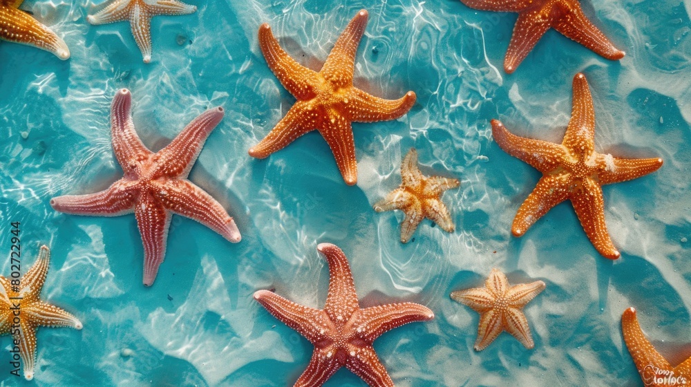 Colorful Starfish on Blue Background Pattern