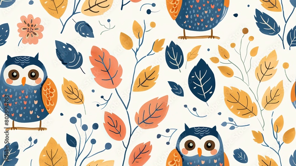 Owl Bird With Autumn Tree Refreshing Positive Feeling Wallpaper Mural - Decorly Solutions | Decorly Solutions