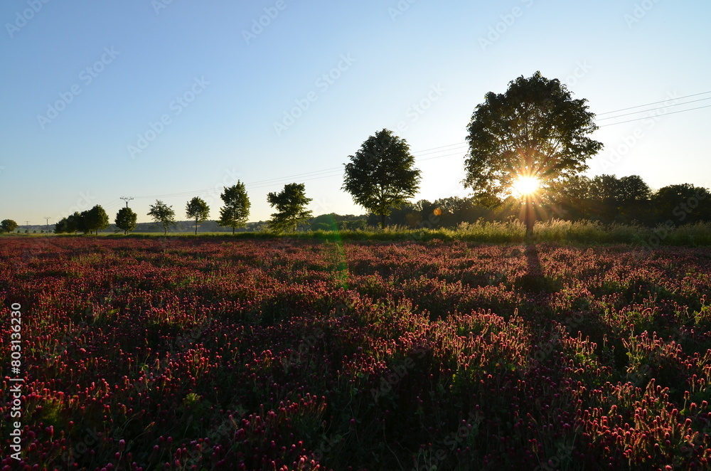 Trifolium Incarnatum Filed With Red Clover Flower Closeup Wallpaper Mural - Decorly Solutions | Decorly Solutions