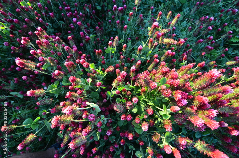 Trifolium Incarnatum Filed With Red Clover Flower Closeup Wallpaper Mural - Decorly Solutions | Decorly Solutions