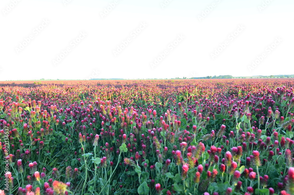Trifolium Incarnatum Filed With Red Clover Flower Closeup Wallpaper Mural - Decorly Solutions | Decorly Solutions