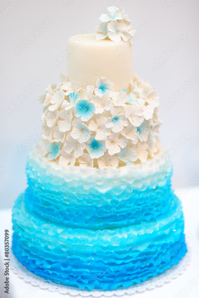 Delicious Blue And White Wedding Cake Wallpaper Mural - Decorly Solutions | Decorly Solutions