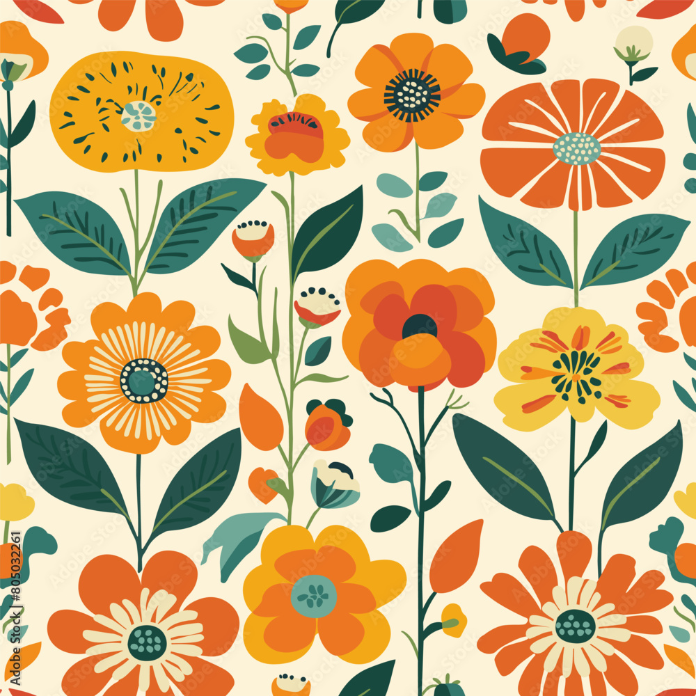 Seamless Pattern In Folk Art Style With Flowers Wallpaper Mural - Decorly Solutions | Decorly Solutions