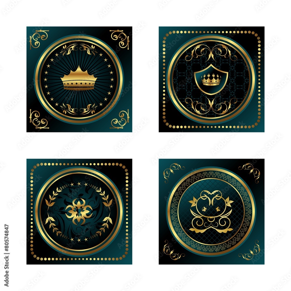 Set Blue Dark Gold-framed Labels Wallpaper Mural - Decorly Solutions | Decorly Solutions