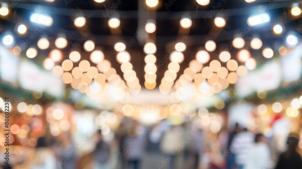 Blurred Night Market Street Scene, People Walking, Festive Lights, Blurred Background