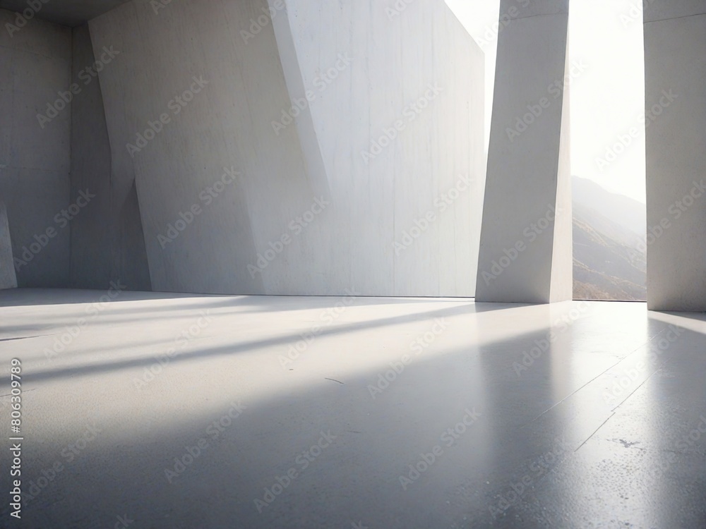 Abstract elegant geometric of blank empty space and white walls with light. Modern concept background. 3d Render