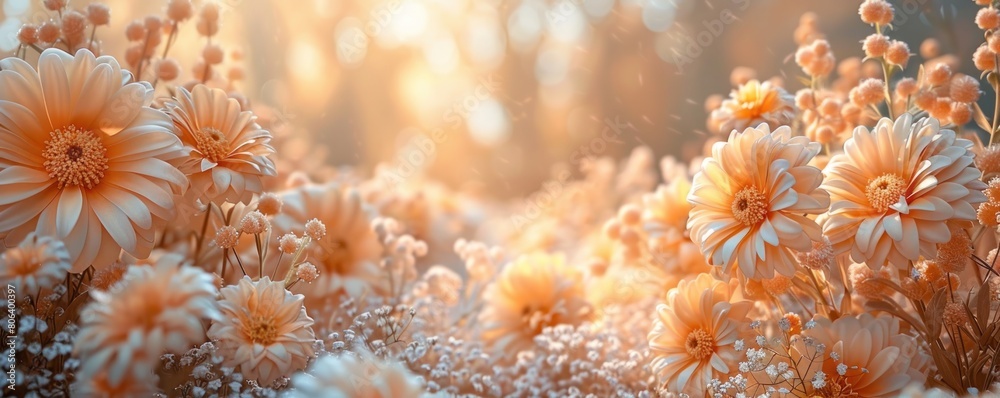 An Archway Filled With White Flowers, In The Style Of Bokeh Panorama, Light White And Light Gold, Large Format