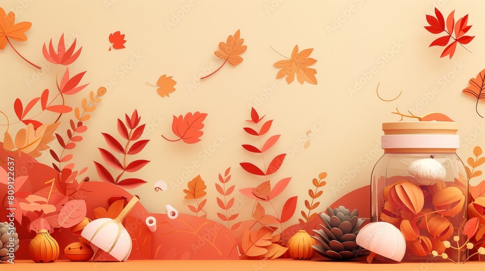 Autumn Leaves and Floral Pattern Seamless Wallpaper Illustration